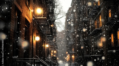 alleyway, brick, building, building, city landscape, city, cold, dark, evening, frost, light, night, snow, snowfall, snowy, street, street light, street light, urban, winter, window, window, white, yellow, night time, season, weather, coldness, atmosphere, gloomy, dim, foggy, crisp, freezing, blizzard, wintery, quiet, calm, peaceful, serene, romantic, cosy