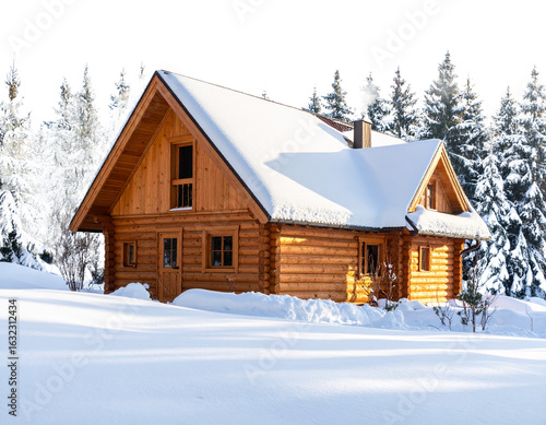 Snowy Cabin Landscape at Sunrise, Cozy Winter Scene