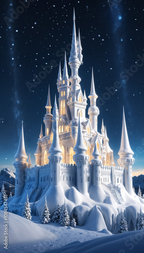 christmas decoration, fairy tale, winter landscape, holiday lights, snowflake, enchanted forest, icicle, winter, snow, sky, cold, architecture, landscape, nature, building, white, ice, snowy, frost, tower, glacé