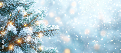 christmas, pine, snow, light, festive, winter, enchanted, branch, gold, glow, holiday, forest, cosy, snowy, illuminated, night, celebration, serene, atmosphere, decor