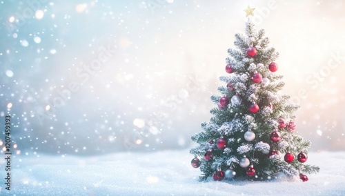 christmas, tree, snow, winter, holiday, festive, decoration, ornament, red, silver, snowy, season, celebration, christmas, december, gift, joy, happy, magical, peace, serene, calm, beautiful, sparkling, light, bright, nature, background, card, greeting, picture, image, wonderland, scene, frosty, cold, star, pine, fir, evergreen