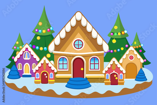 flat, vector, christmas, village, snow, light, holiday, festive, decoration, season, winter, warm, cosy, joy, celebration, scenic