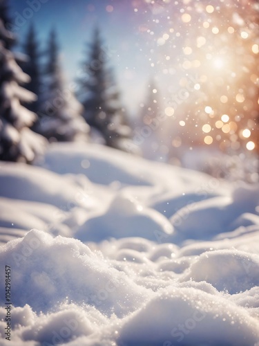 Snowy landscape with bokeh lights