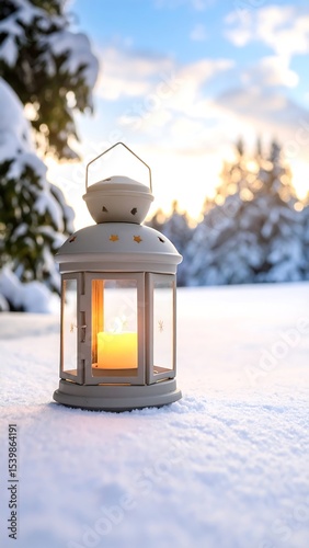 lantern, candle, snow, winter, sunset, christmas, holiday, christmas, winter landscape, cold, serene, peaceful, calm, cosy, romantic, light, nature, festive