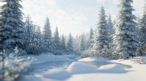 Snowy trees are in the background, nature background, banner, copy space