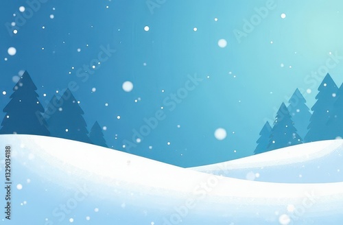 Snowy winter landscape with evergreen trees celebrating New Year and Christmas