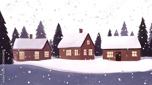 background, art, design, house, pine, scene, snowflake, quiet, cosy, charming, painting, element, village, home, snowy, serene, peaceful, cabin, snowfall, magical, bungalow, invitation, landscape, postcard, tranquil, evergreen, winter, forest, card, festive, illustration, idylli, wonderland, snow, holiday, digital, greeting, graphic, christmas, tree