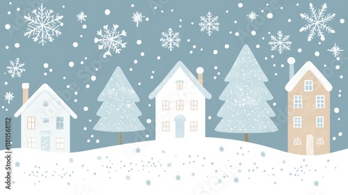 winter, snow, village, house, christmas, landscape, illustration, winter storm, cosy, snowy, festive, holiday, background, christmas card, snow-covered, snowfall, snowscape