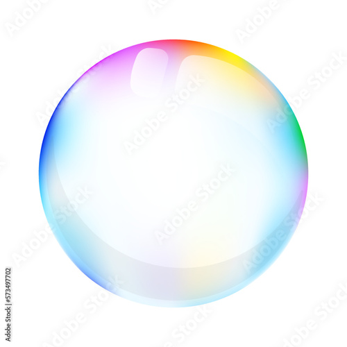 Soap bubble in a rainbow gradient in 3D. Bubble vector illustration.
