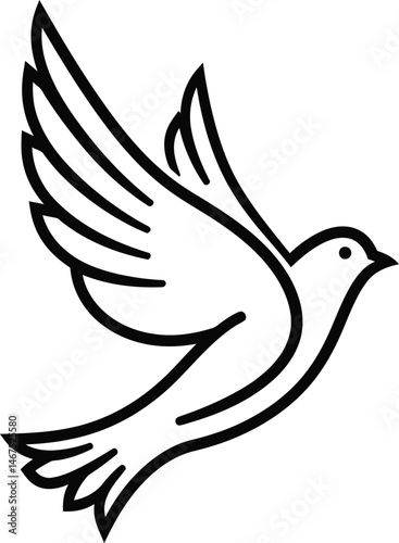 Soaring Silhouette: A minimalist line art of a dove in full flight, its wings gracefully outstretched against the blank background. Evoking a sense of freedom, peace, and hope.