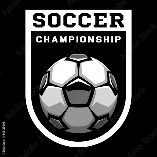 Soccer ball, football logo. Sport games. Sporting equipment. Emblem, badge.