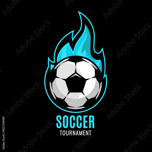 Soccer ball or football ball on fire background. Team or tournament colorful symbol or emblem on black background. Design in a graphic art style, Vector illustration