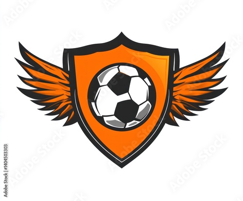 soccer, football, shield, wing, emblem, logotype, team, sport, game, ball, competition, victory, champion, athlete, player, goal, tournament, match, field, stadium, training, fitness, exercise, success, power, strength, speed, passion, action, design, graphic, illustration, vector, artwork, badge, crest, symbol, club, league, orange, white, black