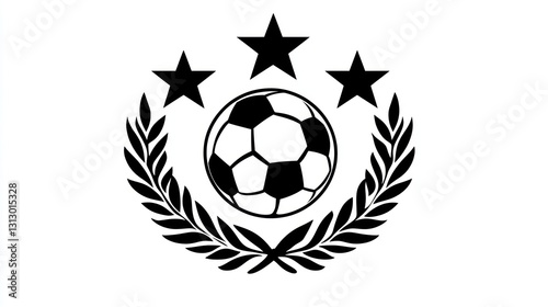 Soccer emblem, laurel wreath, sports logo, black and white design, for use in digital media, print or merchandise