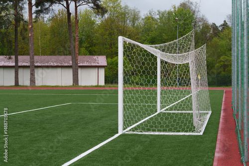 soccer, football, goal, field, grass, net, sport, stadium, game, ball, green, sport, team, park, play, competition, gate, pitch, sky, empty, playground, post, kick, recreation
