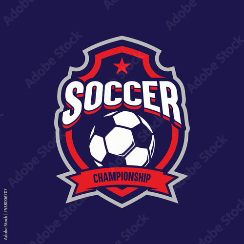 Soccer Red color Football Badge Logo Design Templates | Sport Team Identity Vector Illustrations isolated on blue Background