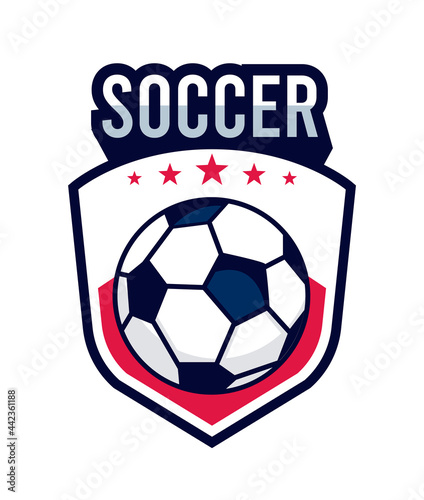 soccer, shield, football, emblem, sport, goal, team, champion, ball, balloon, star, lettering, tournament, league, game, succeed, competition, event, modern, play, signs, vector, design, illustration, isolated