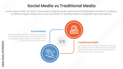 social media vs traditional media comparison concept for infographic template banner with big circle circular and connection with two point list information