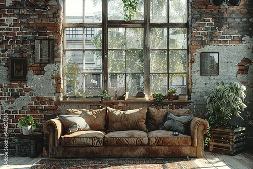 sofa in old vintage brick wall loft - apartment in alten Ziegel Loft