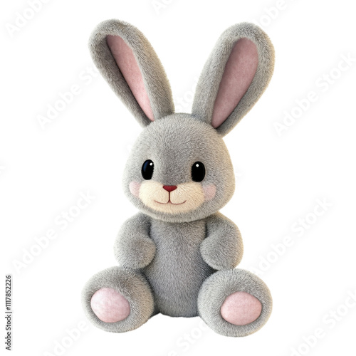 Soft and cuddly gray bunny plush toy sitting on a cozy surface, radiating warmth and charm for kids of all ages on transparent Background
