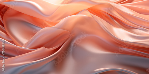 Soft and shiny silk with many large fold waves into a fresh Peach color background