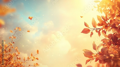 Soft Autumn Sky with Warm Golden Hues and Gentle Leaves