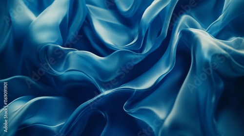 Soft blue fabric ripples gracefully in elegant folds, showcasing a captivating texture and depth. The gentle waves offer a tranquil and calming atmosphere ideal for creative design