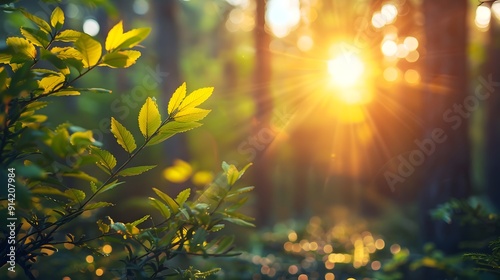Soft focus Forest Background with Sunlit Leaves for Nature Themed Design