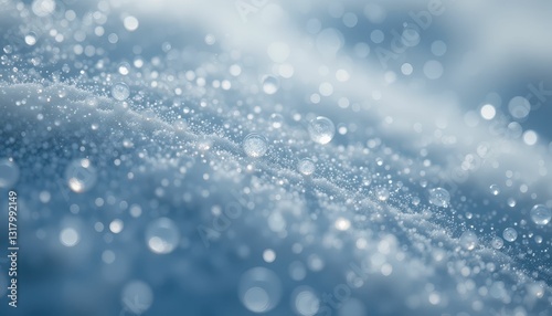 Soft Focus Water Droplets on Light Blue Snowy Background