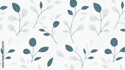 Soft Greenery Pattern with Minimalistic Leaves on Light Background