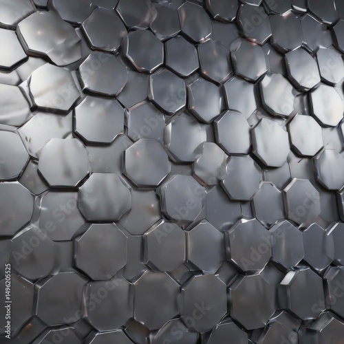 Soft light on abstract hexagonal metal backdrop, sleek background, textures