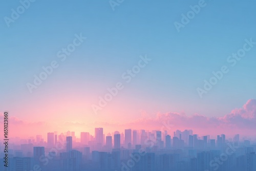 Soft pastel colors blend seamlessly in sky, illuminating urban s