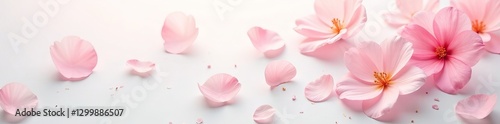 Soft pastel petals on white backdrop, elegant and feminine, elegant, spring