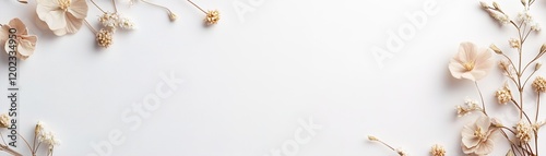Soft pastel pink and beige flowers are scattered on a clean white canvas, providing a fresh and romantic backdrop perfect for Valentine's messages and designs
