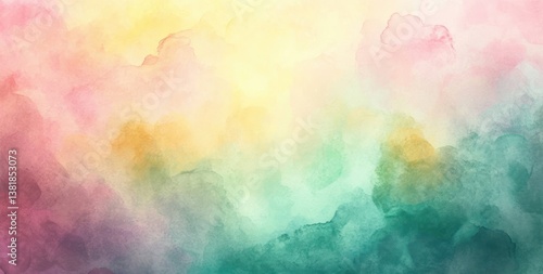 soft pastel watercolor texture background abstract art with green pink blue yellow tones for spring and Easter designs