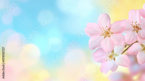 Soft Pink Cherry Blossoms Bloom Against a Pastel Background During Spring, Capturing the Essence of Nature’s Beauty and Vibrant Colors in a Serene Setting