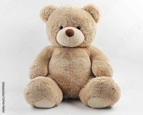 Soft plush teddy bear sitting upright, perfect for cuddling and decoration.