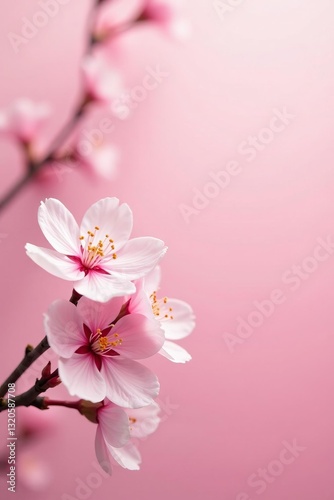Soft sakura flowers on pastel pink spring background with horizontal spring design, spring, soft