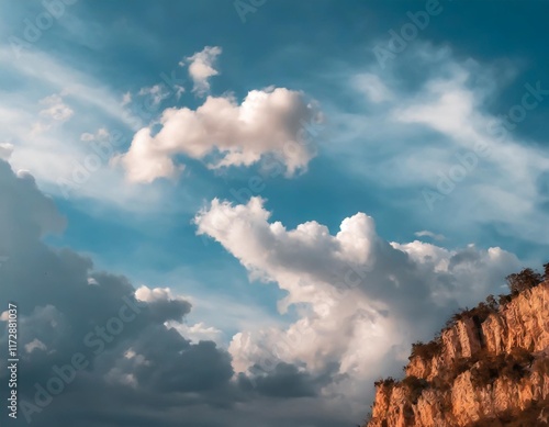 sky blue, cloud, peaceful, calm, serene, airy, tranquil, fresh, smooth, fresh air, isolation, natural light, blue skies, summer sky, clear day, dreamy, refreshing