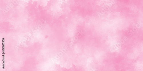 Soft smeared aquarelle painted pink texture, Abstract pink sky background and white clouds on pink canvas, Paint leaks and ombre effects hand painted cloudy pink paper texture.