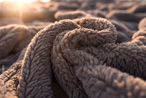 fabric, blanket, fleece, texture, fold, wrinkle, warmth, cosy, soft, pile, brown, beige, grey, light, sun, sunrise, sunset, gold, wrinkled, closeup, detail, material, fuzzy, fluffy, draped, warm, home, comfort, relaxation, natural, softness, drape, curved, furry, threaded, fiber, close, sharpened