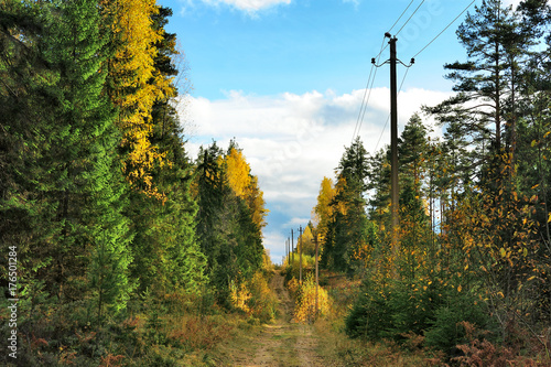 forest, autumn, road, thick, cloudy, sky, glum, cloud, leaf, plant, grass, country, season, fall, nature, wood, landscape, nobody, rural, weather, foliage, way