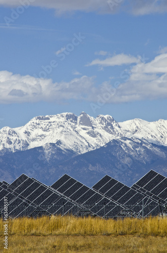 Solar Panels in Power Plant with Sangre de Cristo Mountains