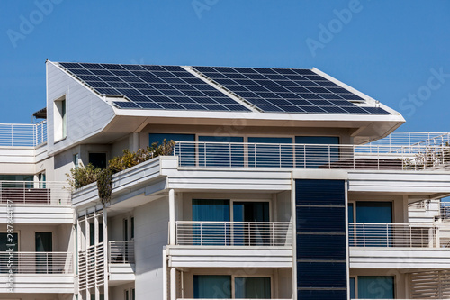 Solar panels on the roof of a modern building - photography