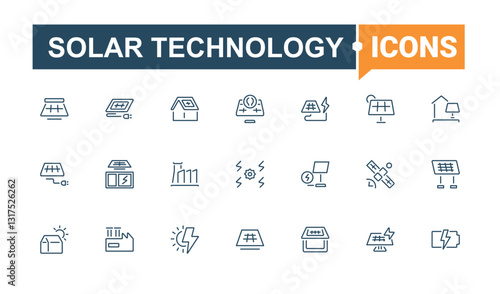 Solar Technology icon set. Includes thin line environment, energy, electric, solar, ecology, panel and more. Solar Energy line icons. Thin icon. Minimalistic icons.
