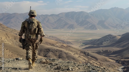 Soldier on Patrol: In a remote area, a soldier moves cautiously while on patrol, staying alert to any potential threats in the environment