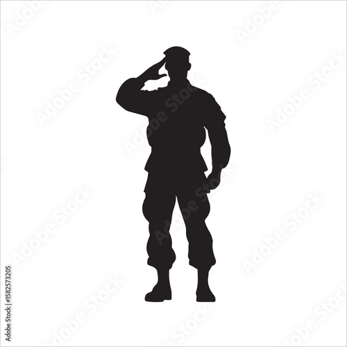 Soldier Salute vector silhouette, saluting male army soldiers white Background, black and white, military salute figure, soldiers saluting in uniform silhouette