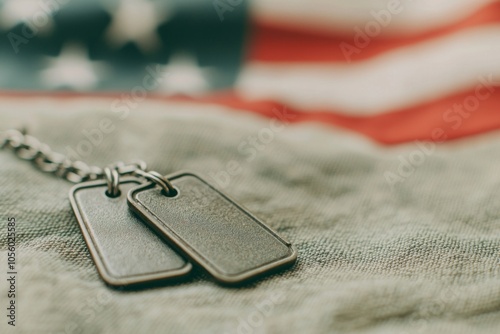Soldiers Tags Beside American Flag Background