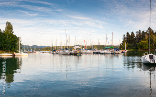 Solińskie Lake seen from the viewpoint in Polańczyk. Polanczyk, Solina, Bieszczady Mountains.