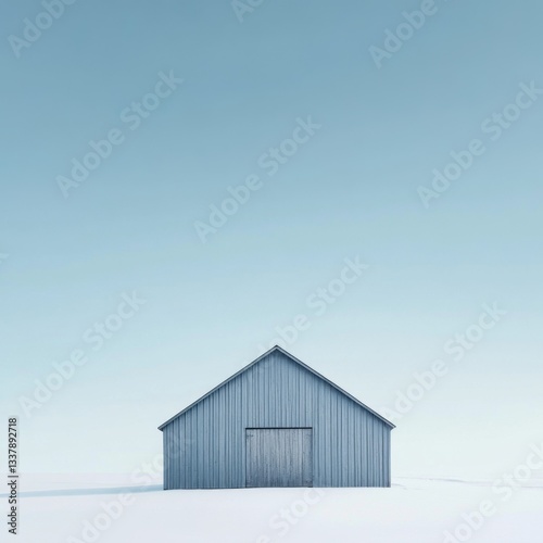 barn, winter, snow, landscape, minimalist, blue, sky, cold, serene, peaceful, building, structure, farm, rural, isolated, solitary, countryside, quiet, calm, stillness, exterior, house, shed, architecture, white, coldness, frost, scene, view, horizon, simple, clean, pale, light, empty, huge, photo, image, picture, minimal